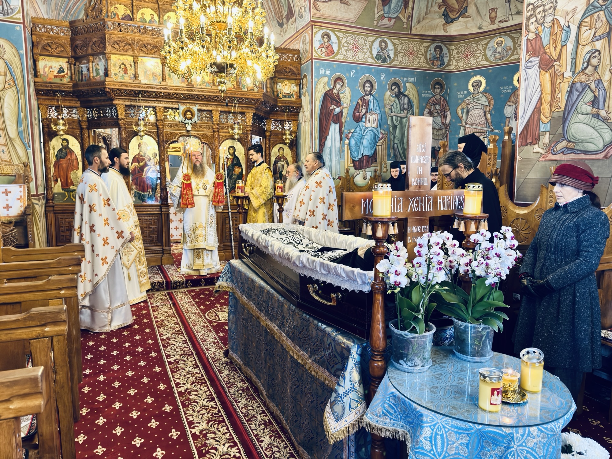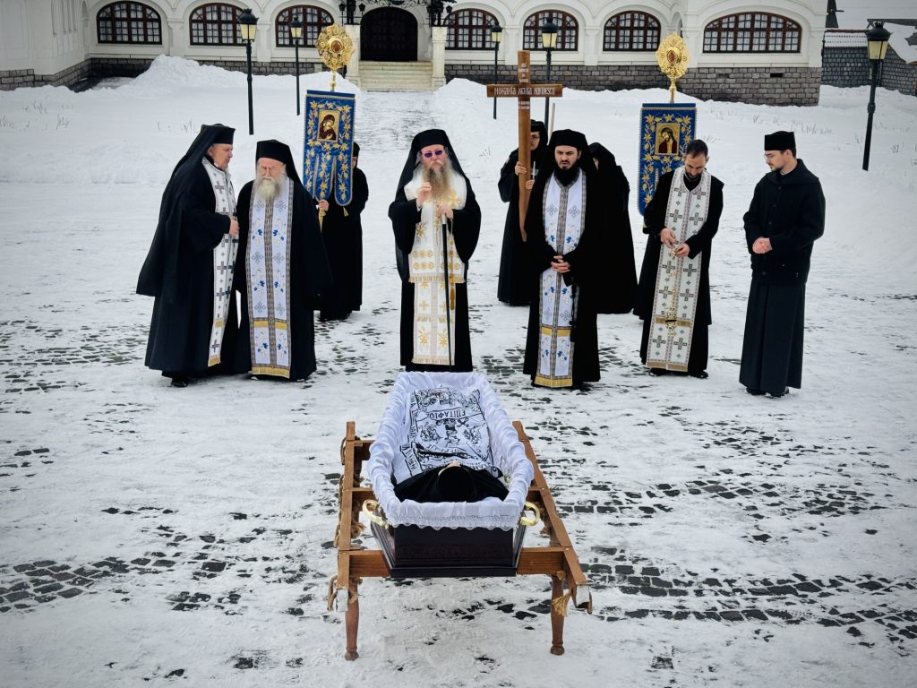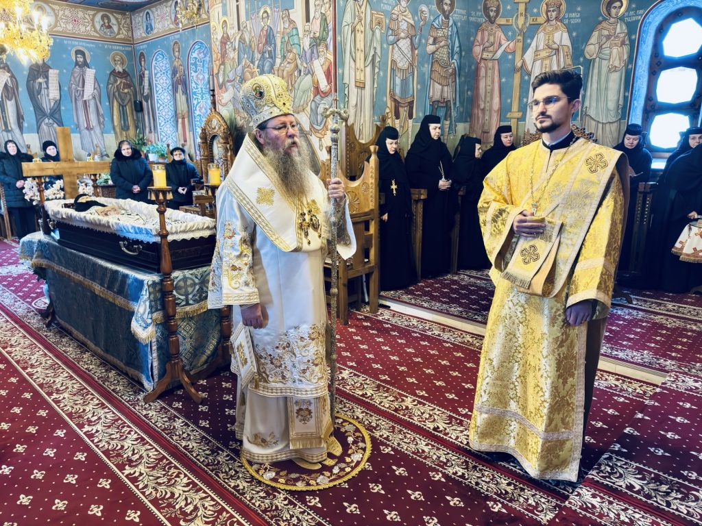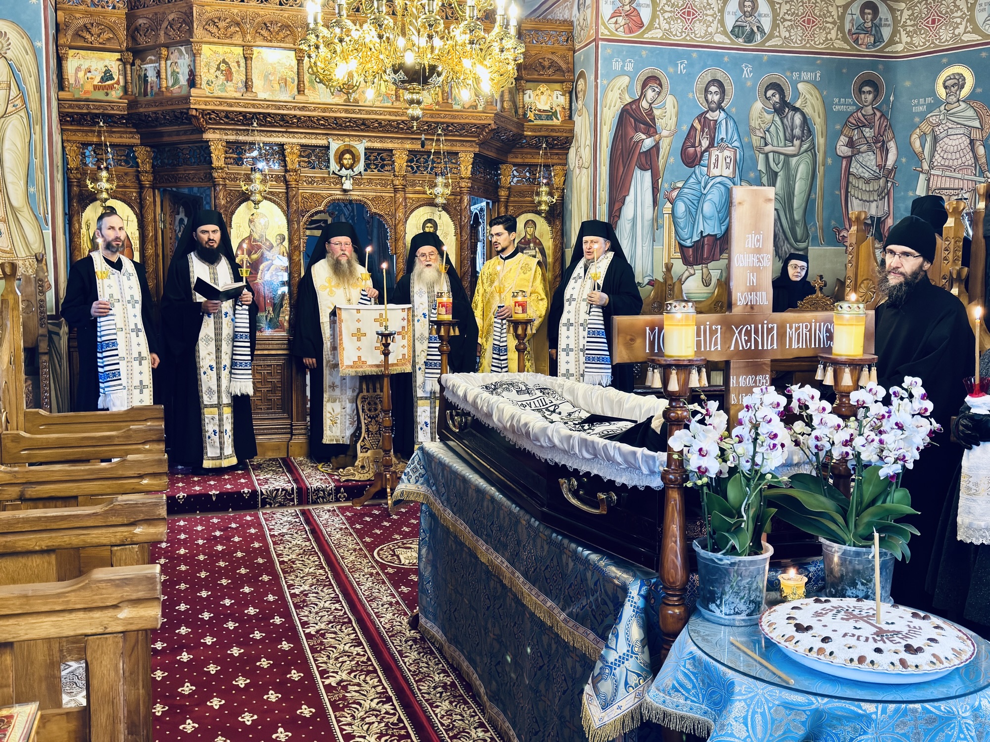 După săvârșirea Sfintei Liturghii, Preasfinția Sa a oficiat slujba de înmormântare a monahiei Xenia, viețuitoare a mănăstirii, care s-a mutat la Domnul după o viață de jertfelnicie, ascultare și rugăciune.