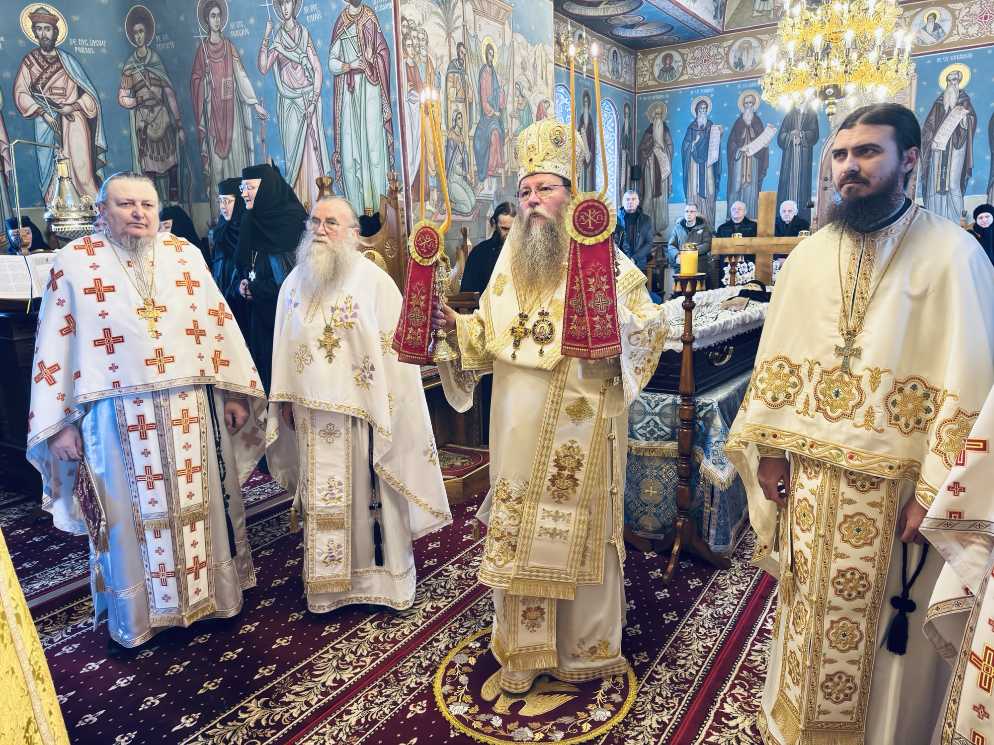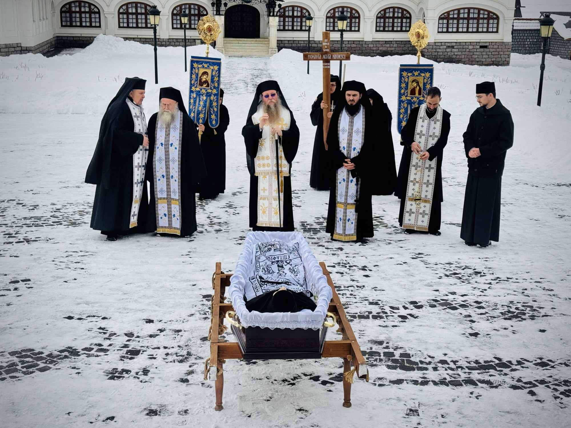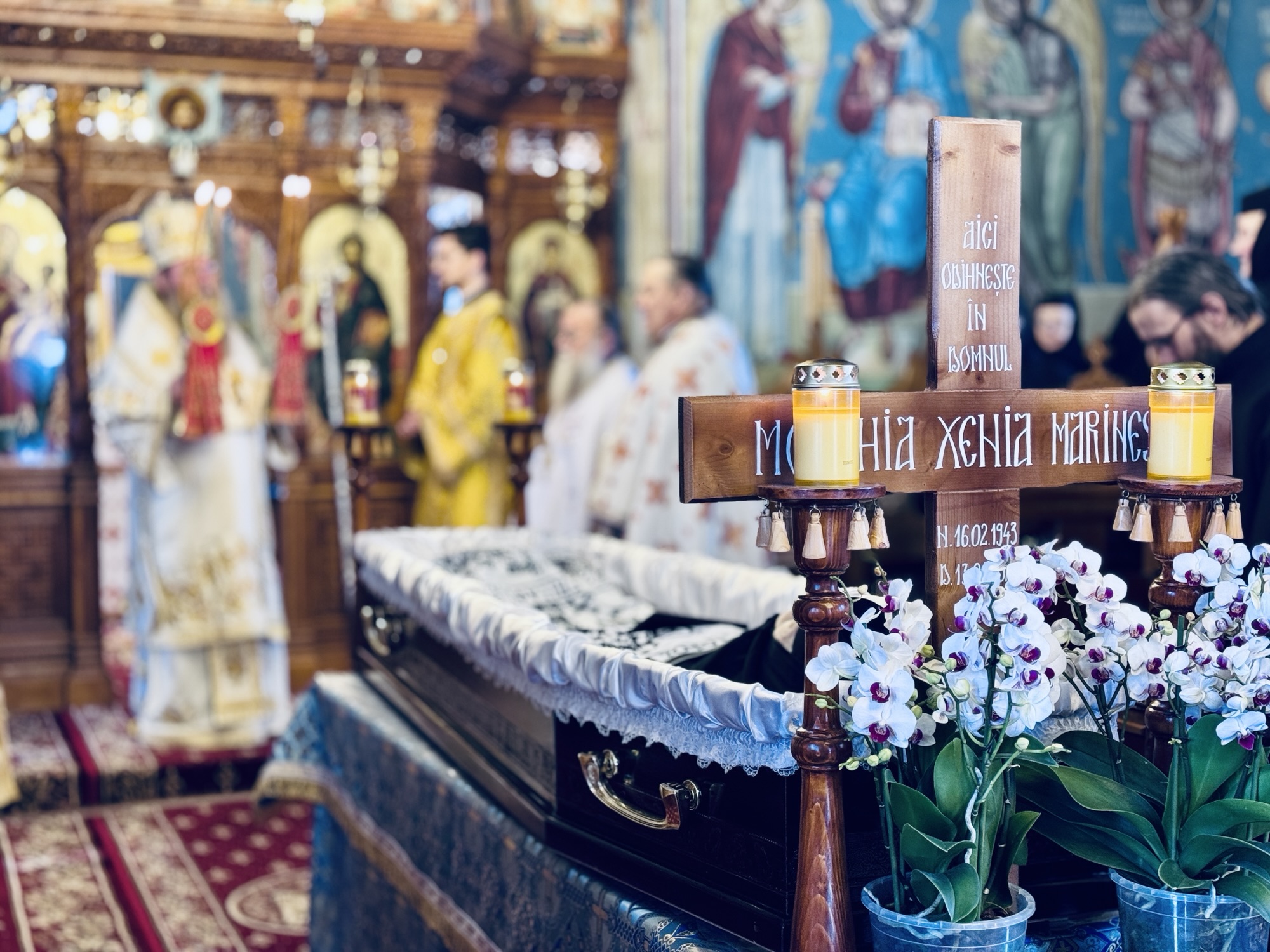După săvârșirea Sfintei Liturghii, Preasfinția Sa a oficiat slujba de înmormântare a monahiei Xenia, viețuitoare a mănăstirii, care s-a mutat la Domnul după o viață de jertfelnicie, ascultare și rugăciune.