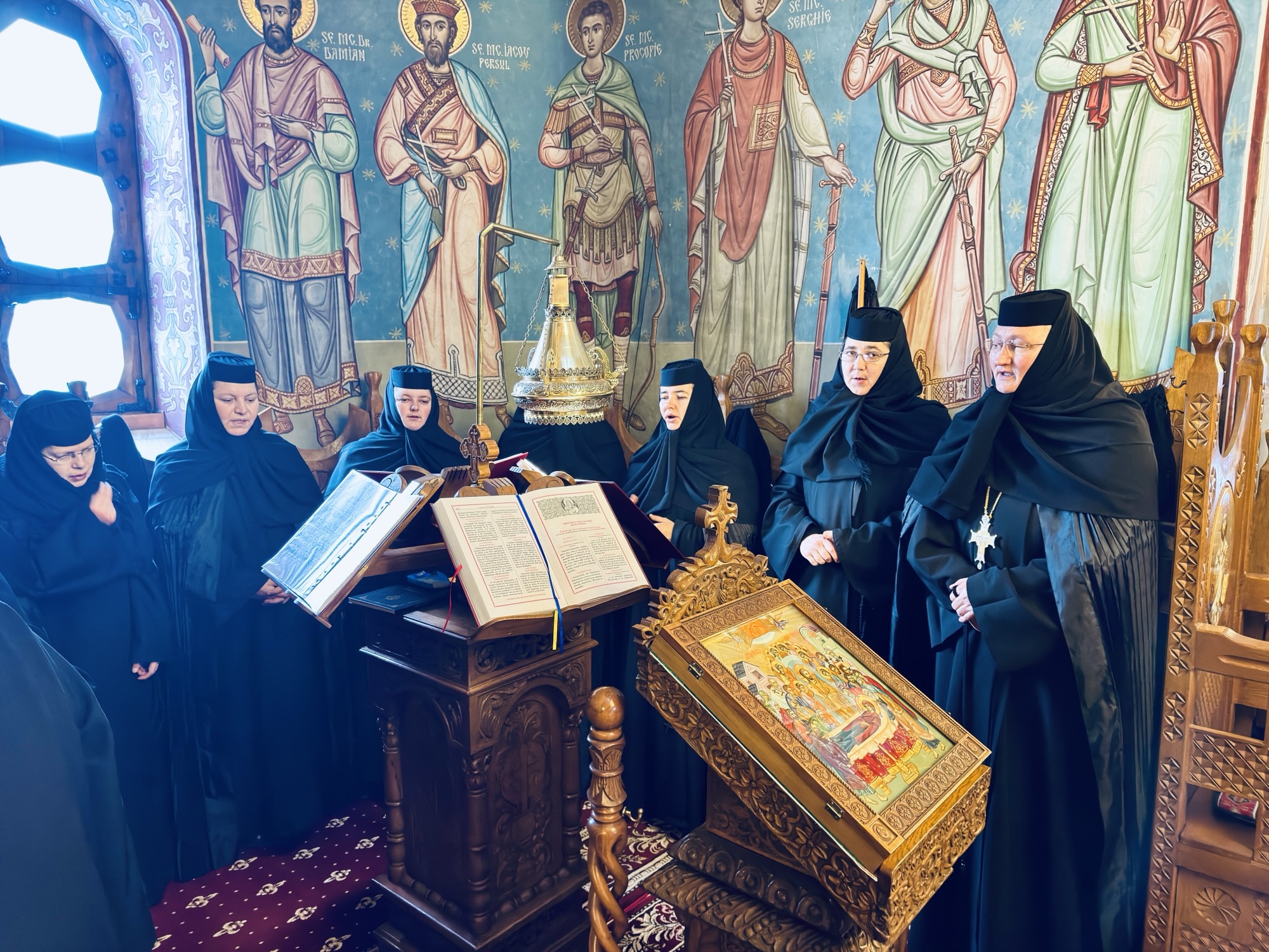 Răspunsurile liturgice au fost oferite de obștea de maici a mănăstirii condusă de Preacuvioasa Maică Stavrofora Miriam, stareța Mănăstirii.